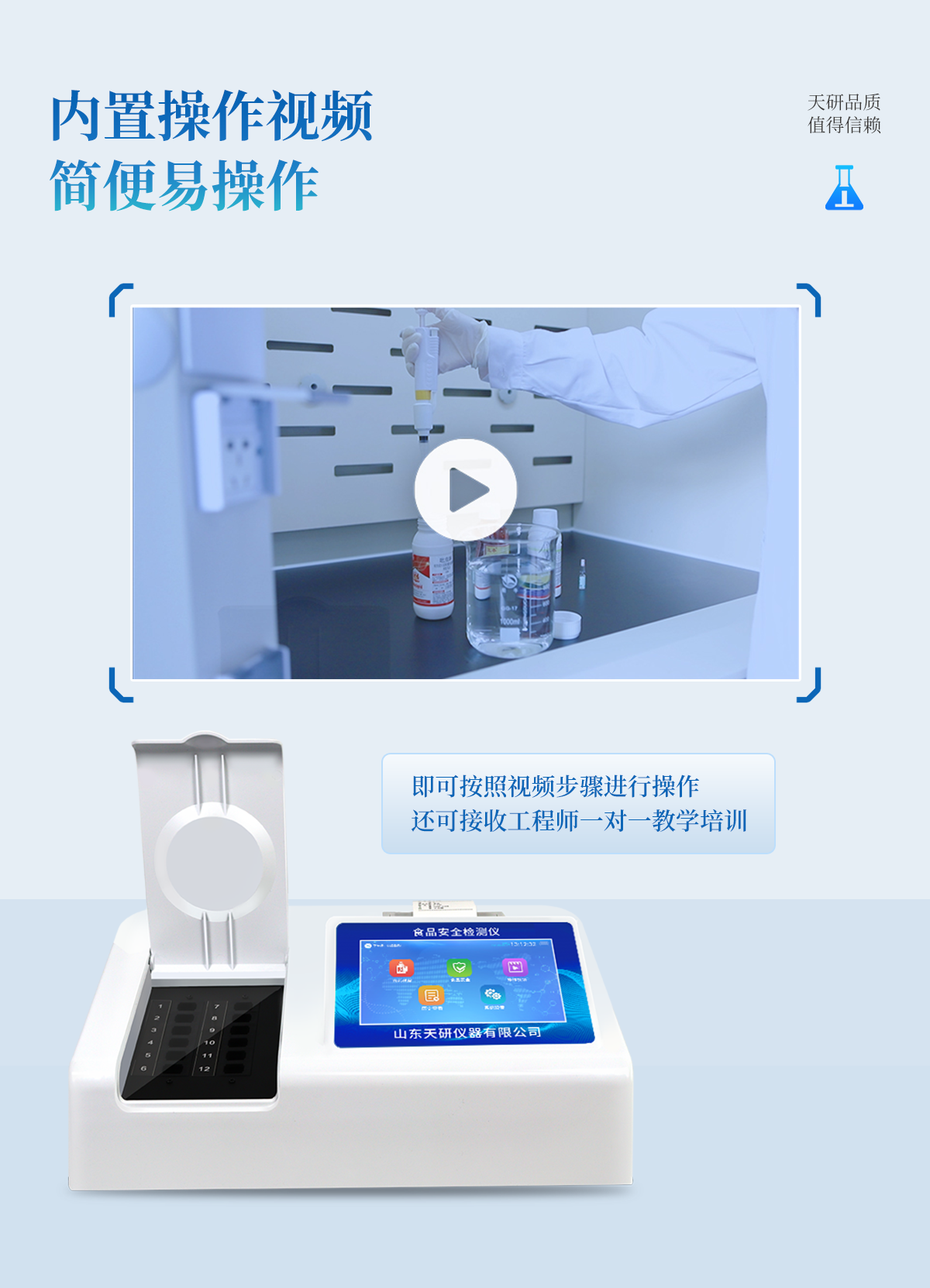| 安卓智能操作系統(tǒng),采用更加**和人性化操作,儀器具有網(wǎng)線連接、wifi聯(lián)網(wǎng)上傳、GPRS無(wú)線遠(yuǎn)傳功能,快速上傳數(shù)據(jù)。 | 智能化程度高,儀器具有自檢功能:具有開(kāi)機(jī)自檢和調(diào)零功能,具有自動(dòng)檢測(cè)重復(fù)性功能。 | 檢測(cè)通道:≥12個(gè)檢測(cè)通道,可以同時(shí)測(cè)試多個(gè)樣品,每個(gè)樣品由程序控制分別獨(dú)立工作,不會(huì)互相干擾。 | 顯示方式:≥8英寸液晶觸摸屏顯示,人性化中文操作界面,讀數(shù)直觀、簡(jiǎn)單。 | 配備新一代嵌入式熱敏打印機(jī),可選擇手動(dòng)打印或者自動(dòng)打印,檢測(cè)完成可自動(dòng)打印檢測(cè)報(bào)告和二維碼。 | 光源采用進(jìn)口超高亮發(fā)光二極管,高精度、穩(wěn)定性強(qiáng)、光源可控、可以關(guān)掉不使用的光源,功耗更低。 | 采用USB2.0接口設(shè)計(jì),方便數(shù)據(jù)的存貯和移動(dòng),并可隨時(shí)與計(jì)算機(jī)直接相連,并且可用計(jì)算機(jī)控制儀器。實(shí)現(xiàn)數(shù)據(jù)查詢、瀏覽、分析、統(tǒng)計(jì)、打印等。 | 儀器帶有監(jiān)管平臺(tái)。數(shù)據(jù)可局域網(wǎng)和互聯(lián)網(wǎng)數(shù)據(jù)上傳,檢測(cè)結(jié)果直接傳至食品安全監(jiān)管平臺(tái)。進(jìn)行區(qū)域食品安全監(jiān)管及大數(shù)據(jù)分析處理,檢測(cè)區(qū)域食品安全長(zhǎng)短期動(dòng)態(tài),達(dá)到食品安全問(wèn)題預(yù)估、預(yù)警 | 一體化便攜式快檢設(shè)備,滿足現(xiàn)場(chǎng)及流動(dòng)檢測(cè)使用需求,能夠在同一軟件下實(shí)現(xiàn)所有檢測(cè)項(xiàng)目的檢測(cè),并可通過(guò)同一窗口直觀顯示檢測(cè)結(jié)果。 | 儀器具有多品類多種類樣品菜單庫(kù),可靈活選擇檢測(cè)樣品,不同的檢測(cè)通道可同時(shí)檢測(cè)不同的樣品項(xiàng)目。也可在儀器上直接編輯錄入樣品名稱、檢測(cè)指標(biāo)、送檢單位等信息并保存進(jìn)樣品數(shù)據(jù)庫(kù)。 | 樣品處理簡(jiǎn)單省力,整體操作快速、安全、便捷。 | 儀器具有自身保護(hù)功能,可設(shè)置用戶名及密碼,防止非工作人員操作等。 | 高靈敏度,高檢測(cè)精度,高重復(fù)性精度,掃描式高精度光學(xué)傳感器。 | 儀器具有重新校準(zhǔn)、鎖定、恢復(fù)出廠設(shè)置功能。 | 支持U盤存儲(chǔ)。 結(jié)果判定線可修改,對(duì)照值標(biāo)定值可保存,斷電不丟失數(shù)據(jù)。 |