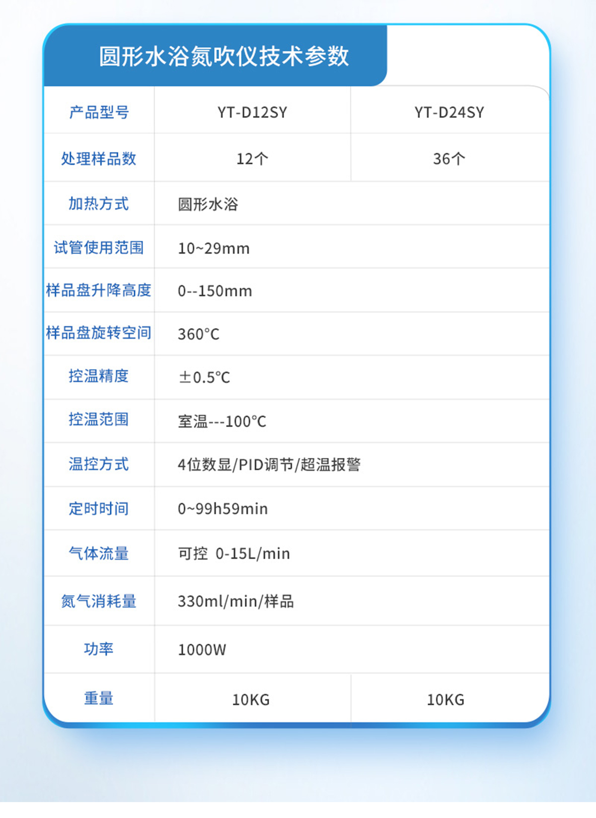 | 每個吹針都可以獨立控制,避免引起交叉污染。 | 儀器氣腔高度可以自行調(diào)節(jié),配備標(biāo)準(zhǔn)氣針長度為15厘米。 | 氮吹儀有36個氣道控制開關(guān),節(jié)約氣體,每根吹氣針的位置可獨立改變吹掃位置,使之適用不同的樣品容器及不同的樣品位置 | 在濃縮有毒溶劑時,整個系統(tǒng)可置于通風(fēng)柜中,降低危險。 | 內(nèi)置超溫保護裝置,自動故障檢測及報警功能,方便實用。 | 儀器有LED顯示屏,溫度同步顯示、時間遞減顯示,可時時觀察溫度變化。 | 具有整體溫度更均勻,加熱速度快 | 本產(chǎn)品還可以作為普通的干式恒溫器使用 | 使用起來更簡便,而且溫度也可以達到150℃,可以更好濃縮樣品 |