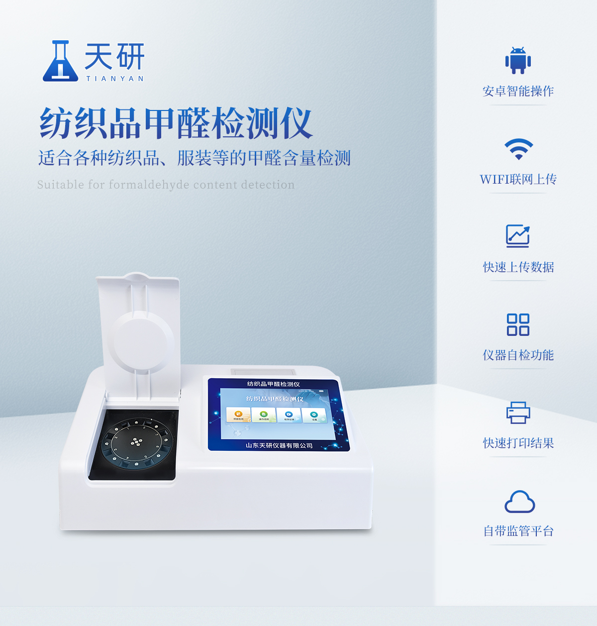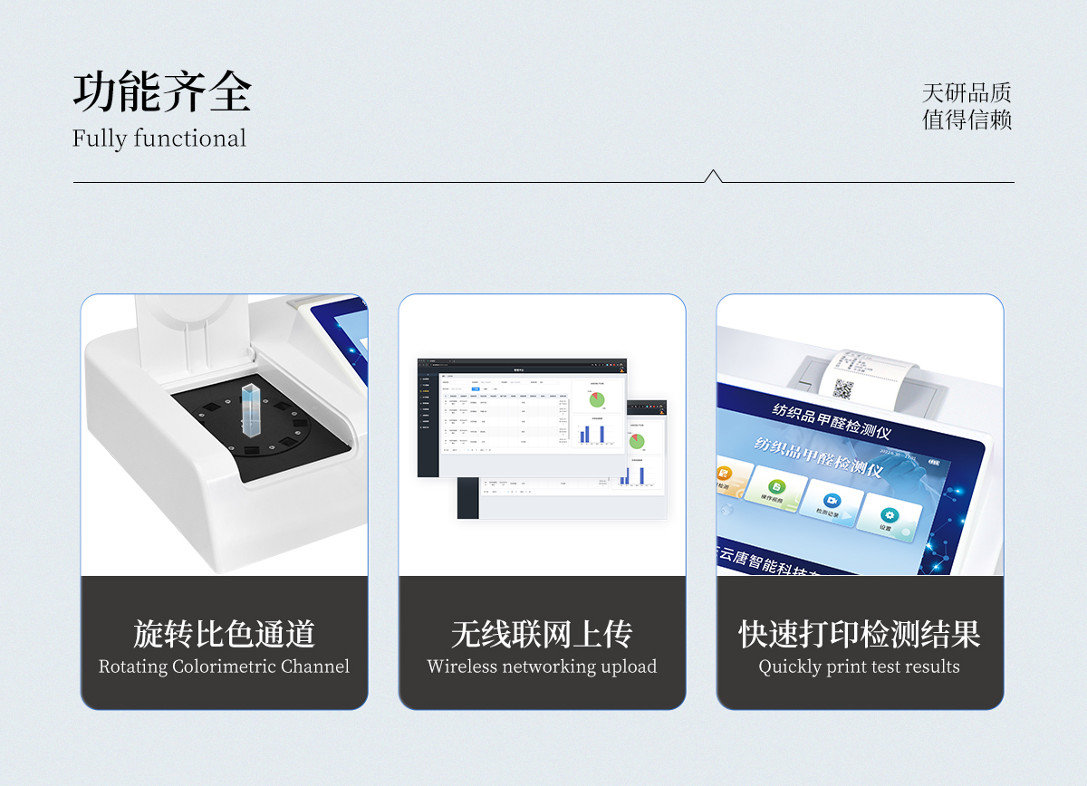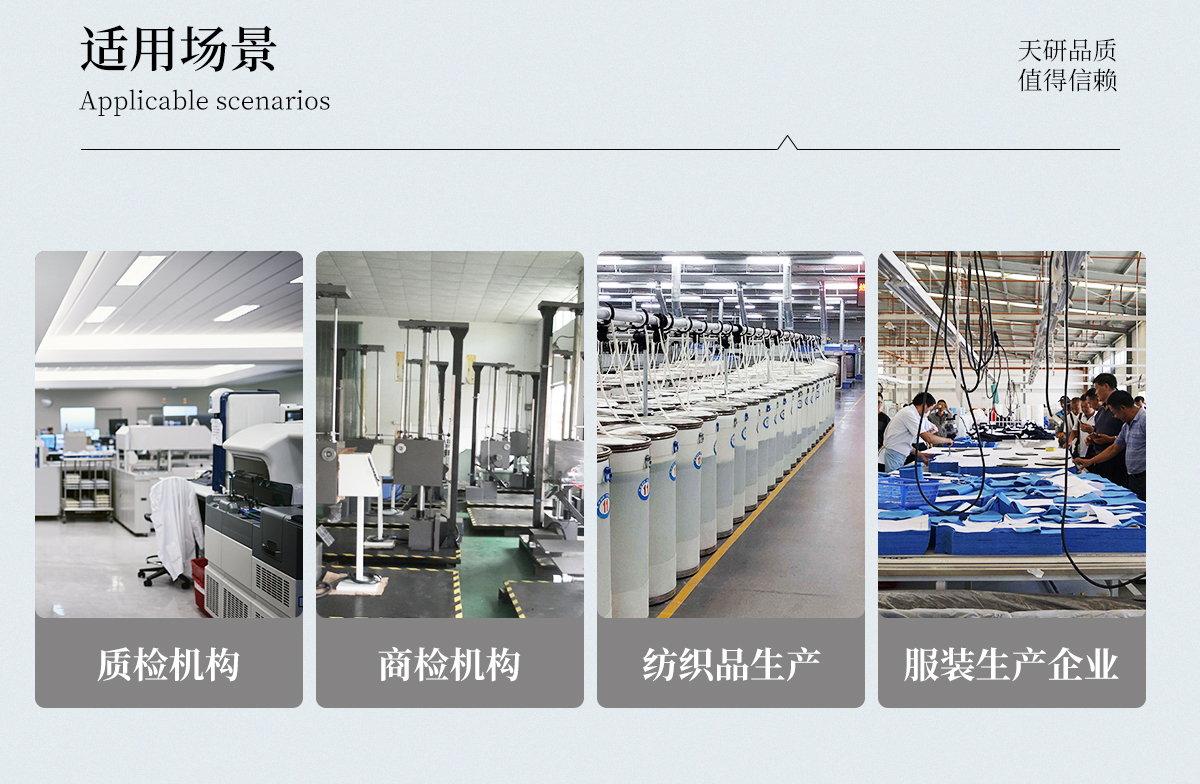 該紡織品甲醛檢測系統(tǒng)與質(zhì)檢、商檢機構(gòu)采用同樣執(zhí)行標準、檢測方法,專業(yè)為廣大紡織品、服裝等生產(chǎn)企業(yè)、質(zhì)檢商檢單位提供“一站式服務(wù)”,同時為各類紡織品甲醛實驗室提供專業(yè)的解決方案。