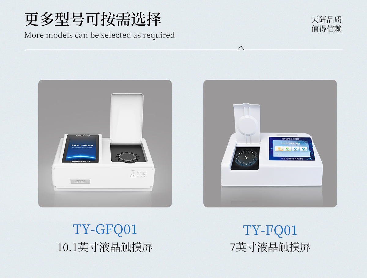 | 1、智能**且方便 | ①智能芯片:主控芯片采用ARM Cortex-A7,RK3288/4核處理器,搭配安卓智能操作系統(tǒng),集實驗操作,分析結(jié)果,打印報告等功能于一體,使用方便,性能更強。 | ②大屏顯示:采用10.1英寸液晶觸摸屏,單機即可操作,無需連接外部顯示或控制器。 | ③多樣同檢:儀器具有12個檢測通道,可同時一次性檢測11個樣品,效率更高。 | ④工作預設(shè):具有任務(wù)預設(shè)模塊,一鍵提前預設(shè)樣品所有信息內(nèi)容。來樣時可直接檢測,同時可多次調(diào)取。 | ⑤數(shù)據(jù)分析:設(shè)備首頁自動匯總分析數(shù)據(jù),并繪制柱形分析圖,各項檢測數(shù)據(jù)一目了然,快捷直觀。 | ⑥高度集成:模塊高度集合,將分光光度模塊、數(shù)字化管理模塊、無線通訊模塊集成于一體??蓪z測結(jié)果進行分析,直接上傳至數(shù)據(jù)平臺,實現(xiàn)數(shù)據(jù)共享,方便后期進行數(shù)據(jù)分析與統(tǒng)計。 | ⑦遠程升級:儀器具備遠程升級功能,可遠程升級程序,無需返廠,并可持續(xù)性免費更新系統(tǒng)版本,降低成本及運輸損耗風險。 | 2、檢測精準且直觀 | ①**技術(shù):精密旋轉(zhuǎn)比色池,使用同芯片同光源校準精度,解決不同光源之間存在波長誤差的問題,更加準確**。 | ②結(jié)果直觀:儀器自動對檢測結(jié)果與國標限量值進行對比,自動判定結(jié)果是否合格,結(jié)果更直觀。 | 3、功能強大且實用 | ①存儲功能:設(shè)備可以存儲數(shù)據(jù)100000組,可在屏幕上直觀查看歷史數(shù)據(jù),可導出數(shù)據(jù)。 | ②打印功能:設(shè)備自帶打印功能,可對樣品信息及檢測結(jié)果無限次隨意打印。 | ③全新方式:新創(chuàng)自定義打印方式,可按需靈活勾選控制:二維碼,抽樣信息、檢測信息,受檢信息、復核信息、抽樣日期、檢測日期等信息的打印 | ④多重編輯:樣品信息可多重編輯,可以對每個通道屬性和樣品信息單獨進行編輯,例如樣品信息、抽樣信息、檢測信息,受檢信息、復核信息、抽樣日期、檢測日期等信息等。 | ⑤雙語設(shè)計:全中文/英文操作菜單,簡單實用,適用于不同用戶的需求。 |