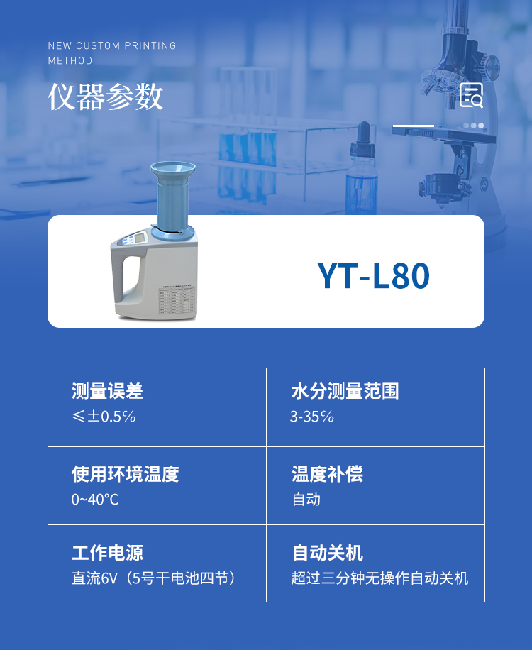 產(chǎn)品介紹: TY-L80型糧食水分測(cè)定儀是老型糧食水分測(cè)定儀的升級(jí)產(chǎn)品、在原來(lái)的基礎(chǔ)上增加了自動(dòng)累加測(cè)量次數(shù),計(jì)算平均值功能和容量自動(dòng)換算顯示功能,其性能更穩(wěn)定可靠,擁有外觀設(shè)計(jì)國(guó)家**,外形新穎美觀,完**與國(guó)外同類(lèi)產(chǎn)品媲美,是水分測(cè)量?jī)x器理想的升級(jí)換代產(chǎn)品。 容重?fù)Q算:獨(dú)特的專(zhuān)