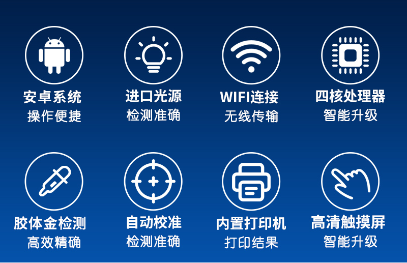| 七寸彩屏全觸摸輸入,支持手寫功能支持WIFI,支持3G、4G; | 支持金標項目檢測定性檢測,結(jié)果可顯示樣品陰陽性結(jié)果 | 內(nèi)置智能操作系統(tǒng)軟件內(nèi)置大容量存儲數(shù)據(jù)庫,可隨時分類查詢已測項目; | ☆數(shù)據(jù)可局域網(wǎng)和互聯(lián)網(wǎng)數(shù)據(jù)上傳,可構建食品安全監(jiān)管系統(tǒng)平臺,支持LIMS 系統(tǒng),內(nèi)置USB接口,可擴展外設; | ☆自動精準識別CT線位置,糾錯范圍可達±3mm; | 支持金標項目檢測定性檢測,結(jié)果可顯示樣品陰陽性結(jié)果; | 檢測響應時間:< 3S | 讀數(shù)精度:CV<1% ; | 12V低壓電源供電,便攜式設計,適合野外,車載或室內(nèi)等各種場所使用 |
