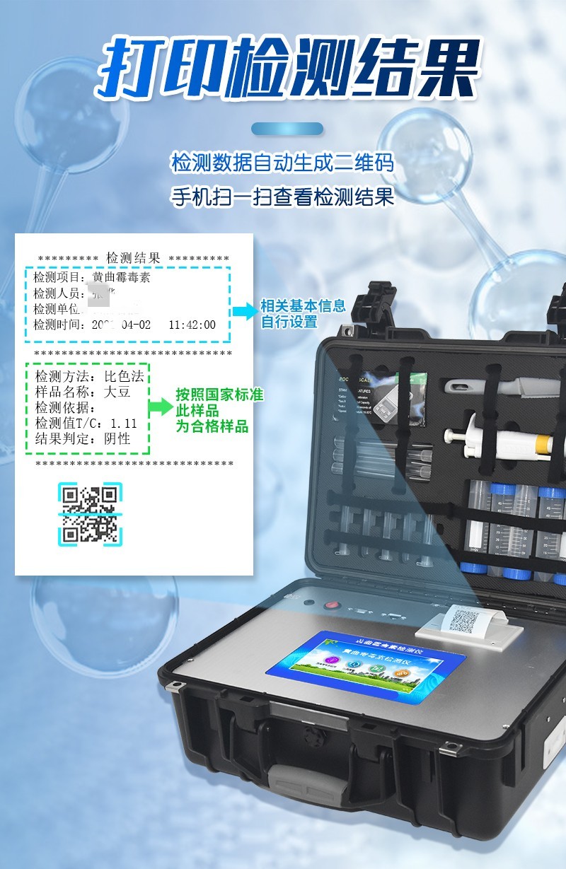 | 工作模式:安卓5.1系統(tǒng)模式 | 軟件支持:安卓軟件平臺 | ☆檢測項目:可檢測農(nóng)藥殘留、食品添加劑、色素、可現(xiàn)場快速檢測農(nóng)藥殘留、鹽酸克倫特羅、沙丁胺醇、萊克多巴胺、四環(huán)素類、硝基呋喃類、磺胺類、沙星類、氯霉素、孔雀石綠磺胺類,并且可以連接食品安全監(jiān)控系統(tǒng)。 | 測量原理:光電池測量反射衰減信號強度; | 測量速度:≤5s; | 儲存功能:儲存至少20000個結(jié)果數(shù)據(jù),支持自定義查詢; | 藍牙模塊:藍牙4.2 | 檢測精度:CV值小于1%(標準卡),批間差小于3%(標準卡); | 檢測輸出:支持色度檢測,CT比值檢測,T線檢測等多種擬合方式; | 內(nèi)置熱敏打印機 | ☆數(shù)據(jù)輸出:內(nèi)置WIFI,支持無線數(shù)據(jù)上傳,標準RS232串口,網(wǎng)絡接口和USB2.0接口; | ☆內(nèi)置食品安全信息系統(tǒng),一鍵數(shù)據(jù)上傳。 | 儀器外形尺寸:300*250*79mm | ☆操作系統(tǒng)配置:7吋液晶屏、4核處理器、1600萬像素 | 凈重:2.0kg。 |
