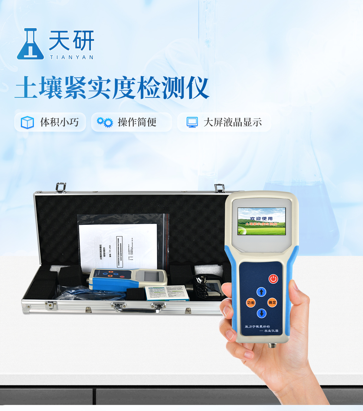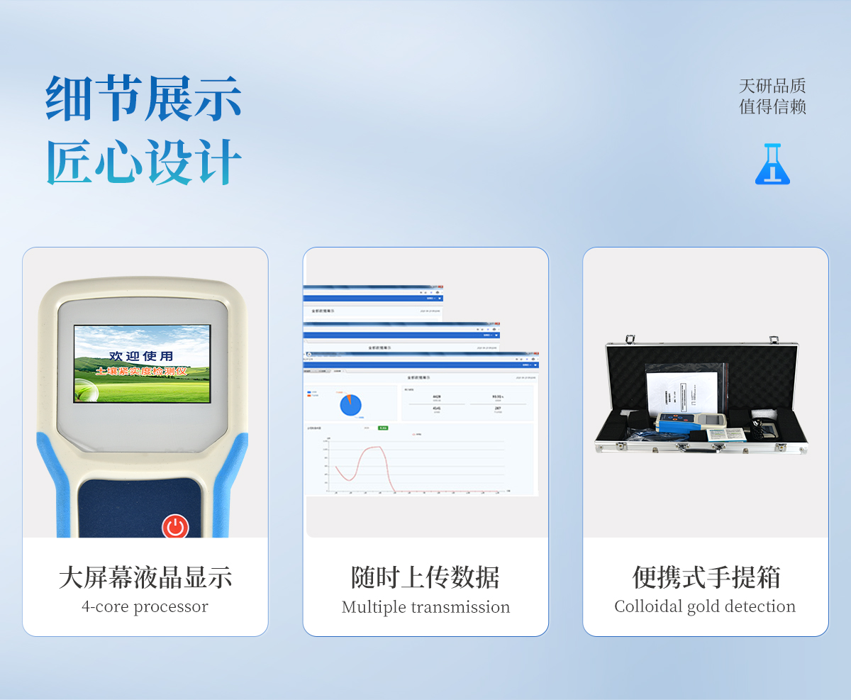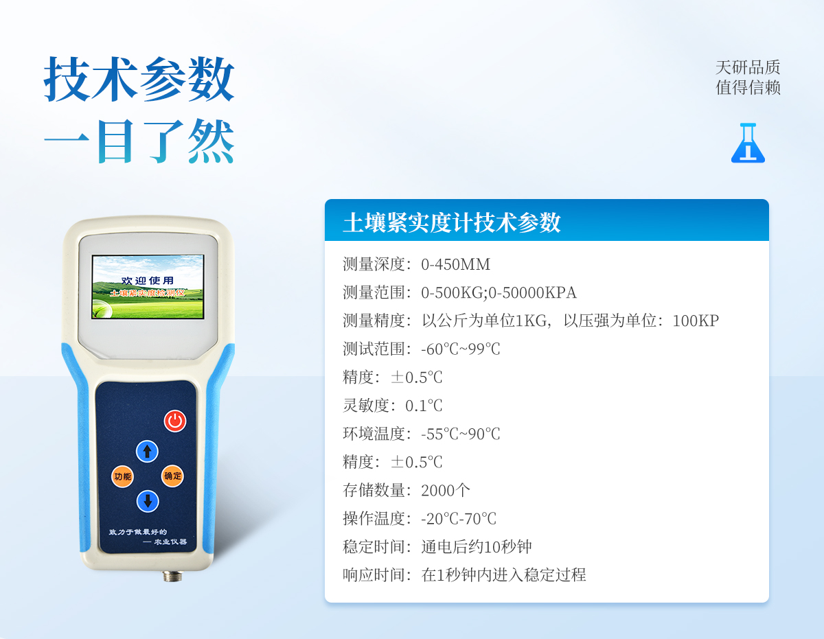 | 該款儀器是本公司由本公司專門研制,用于快速測量土壤環(huán)境中的各個參數值,該款傳感器采用原裝進口的微控芯片,具有運算速度快,存儲數據多,測量數據精準等優(yōu)點,使用大容量鋰電池供電,經濟環(huán)保。 | .采用一體化結構設計,集液晶顯示儀表+傳感器+便攜手提箱合成在一個便攜式手提箱內,本機操作簡單,性能可靠,野外攜帶極為方便。 | .采用大液晶屏顯示測量數據、實時時間、當地經緯度,剩余電量等信息,存儲數據等,便于野外攜帶作業(yè)。 | .高精度傳感器,封裝、手柄、測量桿采用優(yōu)質不銹鋼材料。堅固耐用、永不生銹。 | .能存儲指定各個點的土壤測量值,上位機軟件功能強大,隨時可以通過USB接口將記錄中的數據導出到計算機上,并可以存儲為EXCE表格文件,生成數據曲線,以供其它分析軟件進一步進行數據處理。 | 土壤緊實度計 適用范圍: | 廣泛應用于農業(yè)、氣象、林業(yè)、水利、環(huán)保、地質災害預防等領域的科研、生產、教學中。 |