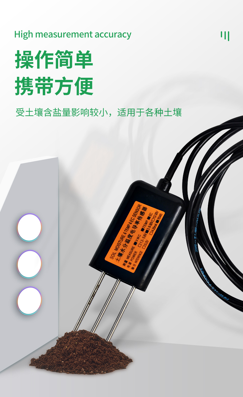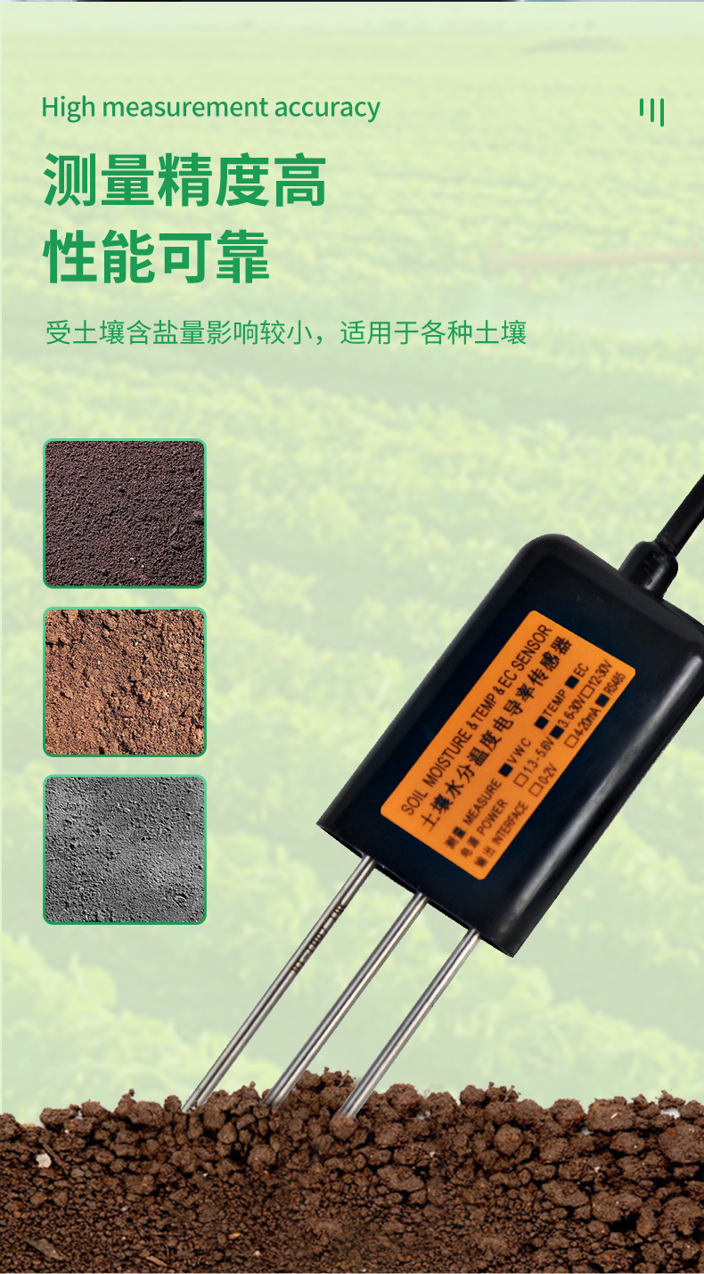 MEC10土壤水分/電導(dǎo)率/溫度傳感器性能穩(wěn)定靈敏度高,是觀測和研究鹽漬土的發(fā)生、演變、改良以及水鹽動態(tài)的重要工具。通過測量土壤的介電常數(shù),能直接穩(wěn)定地反映各種土壤的真實(shí)水分含量。MEC10土壤水分傳感器可測量土壤水分的體積百分比,是符合目前**標(biāo)準(zhǔn)的土壤水分測量方法。適用于土壤墑情監(jiān)測、科學(xué)試驗(yàn)、節(jié)水灌溉、溫室大棚、花卉蔬菜、草地牧場、土壤速測、植物培養(yǎng)、污水處理、精細(xì)農(nóng)業(yè)等場合。