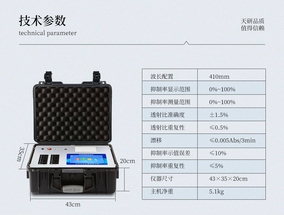 | 410nm | 0%~100% | 0%~100% | ±1.5% | ≤0.5% | ≤0.005Abs/3min | ≤10% | ≤5% | 43×35×20cm | 5.1kg |