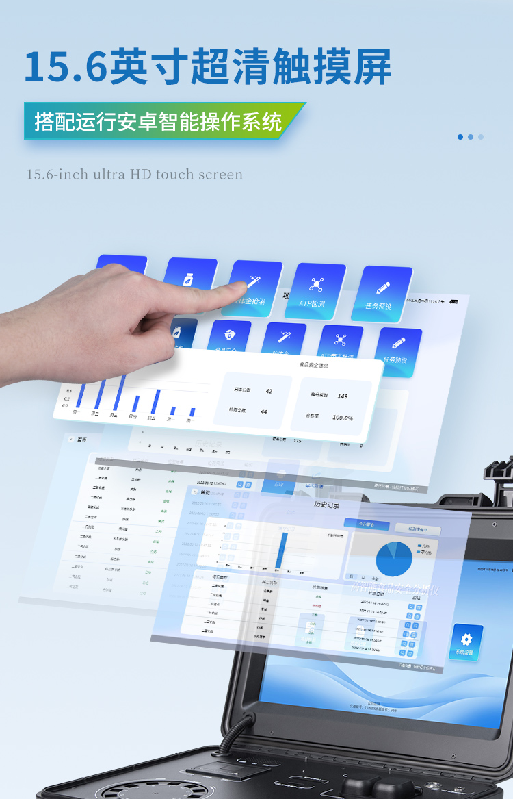 | 儀器采用臺(tái)式一體化系統(tǒng)檢測(cè)技術(shù),將分光光度模塊、膠體金檢測(cè)模塊、新型農(nóng)殘檢測(cè)模塊、數(shù)字化管理模塊、無(wú)線通訊模塊高度集成于一體,支持檢測(cè)200種食品安全檢測(cè)項(xiàng)目,同時(shí)預(yù)留升級(jí)檢測(cè)方法。 | 儀器檢測(cè)模塊標(biāo)準(zhǔn)化、智能化,檢測(cè)項(xiàng)目可隨意自由組合。檢測(cè)箱體內(nèi)置多個(gè)標(biāo)準(zhǔn)檢測(cè)單元,檢測(cè)模塊可以調(diào)整配置。 | 顯示屏幕:儀器采用10.1英寸豎向液晶觸摸屏顯,搭配運(yùn)行安卓智能操作系統(tǒng),主控芯片采用ARM Cortex-A7,RK3288/4核處理器,主頻1.88Ghz,操作方便,性能更強(qiáng)。 | 檢測(cè)通道:≥12通道;采用精密旋轉(zhuǎn)比色池設(shè)計(jì),使用同芯片同光源校準(zhǔn)精度,解決不同光源之間的誤差值,更加準(zhǔn)確**。(1-12通道間誤差0.1%,**號(hào):ZL202022821055.2) | 儀器光源:高精度進(jìn)口四波長(zhǎng)冷光源,每個(gè)通道均配置 410、520、590、630nm 波長(zhǎng)光源,標(biāo)配**的光路切換裝置,**光路切換功能可實(shí)現(xiàn)64波長(zhǎng),并且所有檢測(cè)項(xiàng)目可實(shí)現(xiàn)所有通道同時(shí)檢測(cè)。 | 設(shè)備可一鍵校準(zhǔn),自動(dòng)保存校準(zhǔn)數(shù)據(jù),自動(dòng)對(duì)比校驗(yàn),得到精準(zhǔn)光源,采用Android SP存儲(chǔ)數(shù)據(jù),光源數(shù)據(jù)永不丟失,方便每一次使用。 | 通訊接口:配備無(wú)線通信模塊、可選配4G(APN)通訊模塊和藍(lán)牙傳輸,同時(shí)具有雙USB接口以及RJ45網(wǎng)線接口,可以多方式實(shí)現(xiàn)數(shù)據(jù)保存及數(shù)據(jù)傳輸。 | 存儲(chǔ)方式:支持U盤(pán)存儲(chǔ),標(biāo)準(zhǔn)USB接口,免驅(qū)動(dòng)安裝。檢測(cè)結(jié)果存儲(chǔ)容量20萬(wàn)條以上,可生成Excel表格進(jìn)行拷貝,并具有登錄保護(hù)功能。 | 智能化操作系統(tǒng): | 1、操作系統(tǒng):儀器可在同一檢測(cè)界面自動(dòng)對(duì)應(yīng)相關(guān)檢測(cè)通道,一次性選擇1-12個(gè)樣品名稱(chēng),無(wú)需退出界面,節(jié)省操作時(shí)間。并可以對(duì)每個(gè)通道屬性和樣品信息單獨(dú)進(jìn)行編輯,例如送檢單位、人員,檢測(cè)人員等,打印時(shí)勾選打印顯示。 | 2、數(shù)據(jù)集成系統(tǒng):設(shè)備首頁(yè)自動(dòng)匯總分析檢測(cè)數(shù)據(jù),包含:周檢測(cè)數(shù)據(jù)、月檢測(cè)數(shù)據(jù),全部檢測(cè)總數(shù)量,均包含檢測(cè)總數(shù),合格數(shù),不合格數(shù),以及相關(guān)柱形分析圖,各項(xiàng)檢測(cè)數(shù)據(jù)一目了然,無(wú)需電腦查詢(xún),更加快捷直觀。 | 3、數(shù)據(jù)庫(kù)系統(tǒng):十幾項(xiàng)數(shù)據(jù)庫(kù)分類(lèi)管理儀器:包含項(xiàng)目類(lèi)型、項(xiàng)目數(shù)據(jù)、檢測(cè)數(shù)據(jù)、歷史記錄、國(guó)標(biāo)信息、曲線信息、采樣信息、檢測(cè)信息、受檢信息、復(fù)核信息、圖表信息、光源校準(zhǔn)信息、打印樣式信息、樣品庫(kù)信息等等,數(shù)據(jù)庫(kù)之間互相協(xié)調(diào)聯(lián)動(dòng)保證數(shù)據(jù)的真實(shí)完整性。同時(shí)產(chǎn)品數(shù)據(jù)庫(kù)以及歷史檢測(cè)記錄支持一鍵檢索功能。 | 4、限量規(guī)判系統(tǒng):具有限量查詢(xún)、添加物質(zhì)合規(guī)判定系統(tǒng)。檢測(cè)出結(jié)果后,系統(tǒng)自動(dòng)調(diào)用系統(tǒng)數(shù)據(jù)庫(kù)中相關(guān)國(guó)標(biāo)進(jìn)行比對(duì)判定,客觀顯示判定結(jié)果是否合格。 | 5、項(xiàng)目預(yù)設(shè)系統(tǒng):儀器具有任務(wù)預(yù)設(shè)模塊,一鍵提前預(yù)設(shè),給出方便快捷的新檢測(cè)方案,每一個(gè)任務(wù)分別可以設(shè)置不同的樣品、批次、編號(hào)、來(lái)源、備注、抽樣信息、檢測(cè)信息、受檢信息、復(fù)核信息等更多信息。樣品送檢時(shí)一鍵調(diào)取保存信息,并可多次調(diào)取,大大提高檢測(cè)效率。 | 6、數(shù)據(jù)監(jiān)管系統(tǒng):同步對(duì)接監(jiān)管平臺(tái),數(shù)據(jù)可局域網(wǎng)和互聯(lián)網(wǎng)數(shù)據(jù)上傳,檢測(cè)結(jié)果可選擇直接傳至食品安全監(jiān)管平臺(tái)。進(jìn)行區(qū)域食品安全監(jiān)管及大數(shù)據(jù)分析處理與數(shù)據(jù)統(tǒng)計(jì),檢測(cè)區(qū)域食品安全長(zhǎng)短期動(dòng)態(tài),達(dá)到食品安全問(wèn)題預(yù)估、預(yù)警。 | 7、全新打印系統(tǒng):內(nèi)置全新打印機(jī),新創(chuàng)自定義打印方式,可按需靈活勾選控制:產(chǎn)品合格證(國(guó)家農(nóng)業(yè)部標(biāo)準(zhǔn)要求),二維碼,抽樣信息、檢測(cè)信息,受檢信息、復(fù)核信息、抽樣日期、檢測(cè)日期等信息的打印。 | 8、A4紙版本報(bào)告打印功能(可選配):設(shè)備擁有兩種結(jié)果展示方式,可以自動(dòng)生成A4打印模板和小票打印模板兩種樣式,可通過(guò)WiFi及網(wǎng)線等方式鏈接外置打印機(jī)可進(jìn)行打印。 | 10、供電模式:儀器交直流兩用,直流12V供電,可連接車(chē)載電源,可配6ah大容量充電鋰電池,電量可實(shí)時(shí)顯示,方便戶外流動(dòng)測(cè)試。 | 11、膠體金檢測(cè)模塊:采用單通道CMOS成像處理技術(shù)及膠體金免疫層析技術(shù),可讀取膠體金卡數(shù)據(jù),自動(dòng)采集、處理分析,