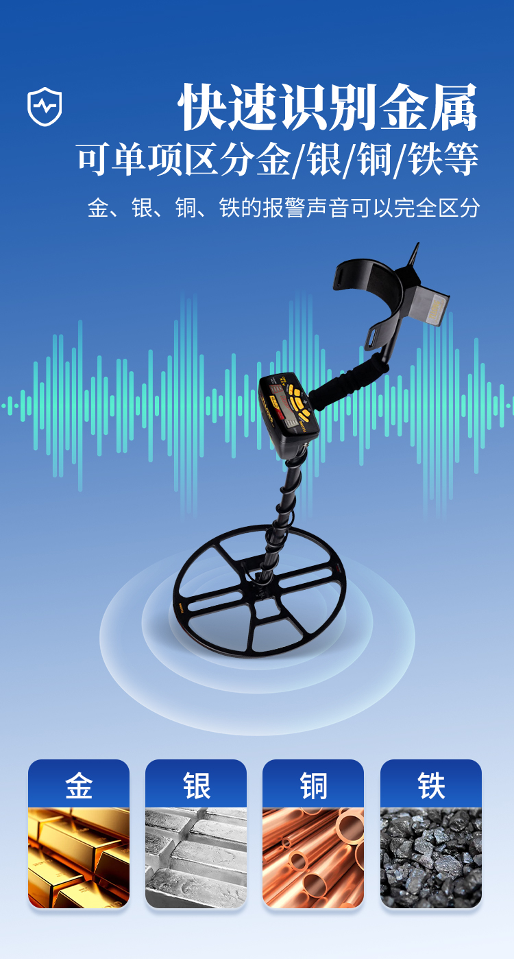 | ●外殼采用高強(qiáng)度ABS工程塑料,具有強(qiáng)度高、重量輕、壽命長; | ●能有效準(zhǔn)確區(qū)別黑色金屬和有色金屬功能; | ●可以排除黑色金屬(鋼鐵)只探測有色金屬(金、銀、銅) | ●設(shè)有地平衡線路,能消除“礦化反應(yīng)”帶來的影響,有效提高探測的深度及準(zhǔn)確率; | ●具有欠壓工作報(bào)警裝置; | ●采用重復(fù)的充電電池進(jìn)行工作; | ●通過喇叭或耳機(jī)識(shí)別探測金屬聲音。 |