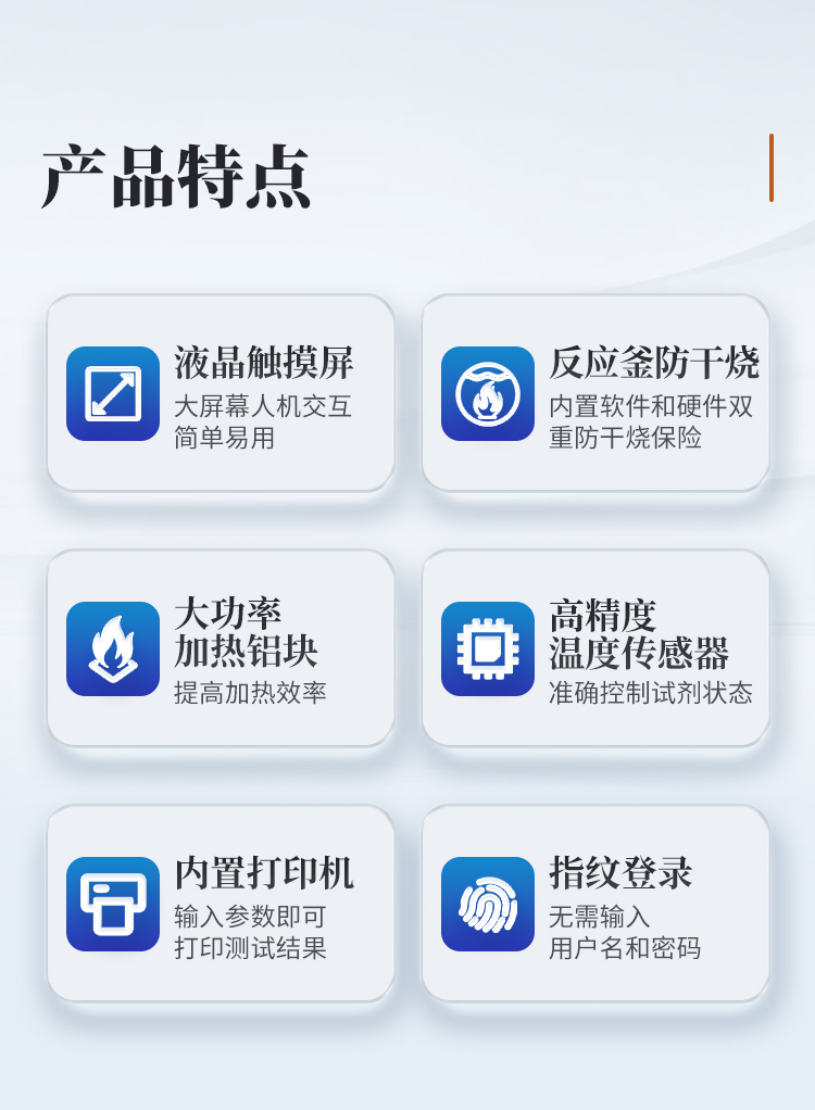 | 1. ☆采用濾袋技術(shù),濾袋孔徑25μm | 2. 耐腐蝕、耐高壓、特殊處理消煮鍋,安全可靠,經(jīng)久耐用 | 3. 彩色液晶觸摸屏,界面簡(jiǎn)潔,操作簡(jiǎn)單 | 4. ☆全自動(dòng)測(cè)試過(guò)程,包括自動(dòng)添加各種試劑、消煮、加熱、控溫、定時(shí)攪拌、清洗和排廢,無(wú)需人員值守 | 5. ☆**間歇攪拌技術(shù),模擬手工攪拌,使樣品處理更均勻,攪拌徹底、均勻,無(wú)試劑漏液風(fēng)險(xiǎn),安全可靠,攪拌速度15圈/分鐘,間歇周期1分鐘 | 6. **批處理能力,批處理能力為30個(gè)/批,效率高,節(jié)省試劑 | 7. ☆自動(dòng)根據(jù)樣品數(shù)量添加試劑,降低使用成本 | 8. 獨(dú)立的酸液、堿液、蒸餾水耐腐蝕精密加液泵,使用可靠,更安全 | 9. 全面的監(jiān)控配置,包括試劑量、溫度、壓力監(jiān)測(cè) | 10. ☆儀器內(nèi)置250組用戶自定義測(cè)試方案,使用更簡(jiǎn)潔 | 11. 儀器具備定時(shí)啟動(dòng)功能,測(cè)試更方便 | 12. ☆儀器采用高壓密閉測(cè)試,無(wú)需冷卻水,節(jié)水環(huán)保 | 13. 儀器可以直接在普通實(shí)驗(yàn)室環(huán)境,無(wú)需通風(fēng)櫥 | 14. 儀器內(nèi)部無(wú)危險(xiǎn)的玻璃材質(zhì)器件,安全可靠 |
