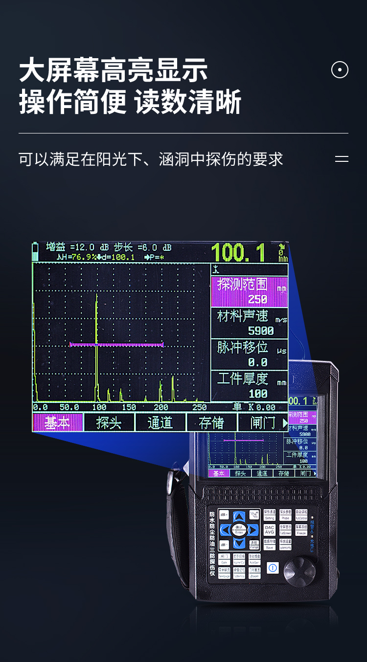超聲波探傷儀器是一種便攜式工業(yè)無損探傷儀,它能夠便攜、無損傷、準(zhǔn)確地進行工件內(nèi)部多種缺陷(裂紋、疏松、氣孔、夾雜等)的檢測、定位、評估和診斷。