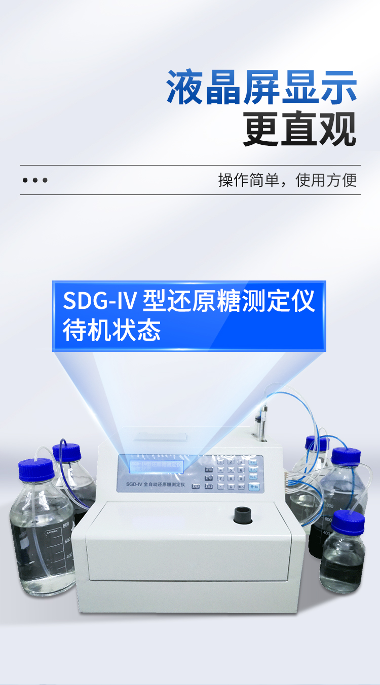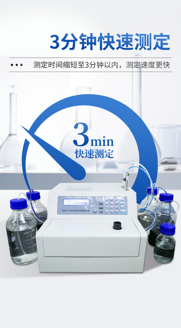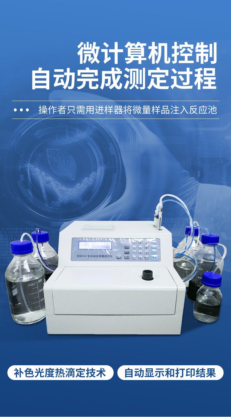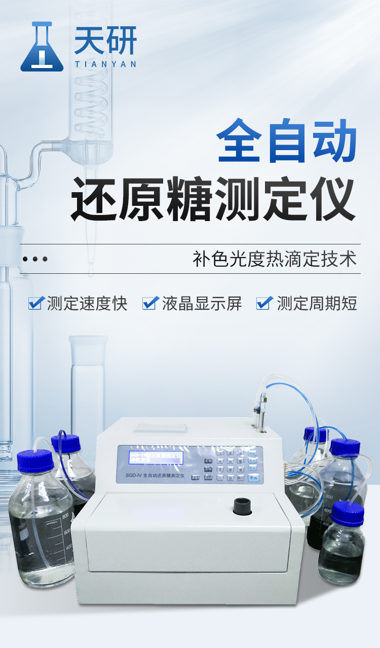 全自動(dòng)還原糖測(cè)定儀是根據(jù)費(fèi)林試劑測(cè)定原理設(shè)計(jì)而成的,其原理與目前國家標(biāo)準(zhǔn)一致。IV型全自動(dòng)還原糖測(cè)定儀實(shí)現(xiàn)試劑泵、滴定泵自動(dòng)排氣泡,操控更方便;采用精密部件優(yōu)化設(shè)計(jì),準(zhǔn)確度更高;測(cè)定時(shí)間縮短至3分鐘以內(nèi),測(cè)定速度更快;液晶屏顯示更直觀。