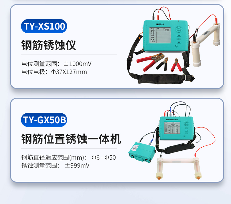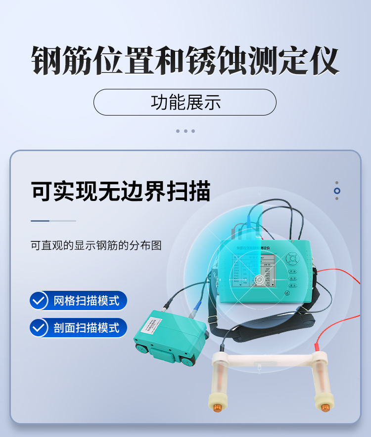 鋼筋位置和銹蝕測(cè)定儀TY-GX50B,集鋼筋儀和銹蝕儀的功能于一體,是集檢測(cè)鋼筋混凝土內(nèi)部鋼筋直徑、位置、分布、鋼筋的混凝土保護(hù)層厚度及鋼筋的銹蝕程度等功能于一體的新一代綜合類鋼筋檢測(cè)設(shè)備。