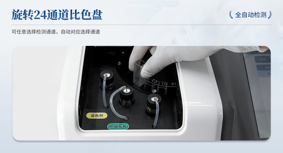 全自動農(nóng)藥殘留檢測儀是依據(jù)國家標準方法(GB/T5009.199-2003),采用酶抑制率比色法對水果、蔬菜等農(nóng)產(chǎn)品中有機磷和氨基甲酸酯類農(nóng)藥含量進行快速準確的檢測。該設備廣泛應用于蔬菜批發(fā)市場、超市、商場、食藥監(jiān)等部門的蔬菜和水果中的農(nóng)藥殘留檢測。