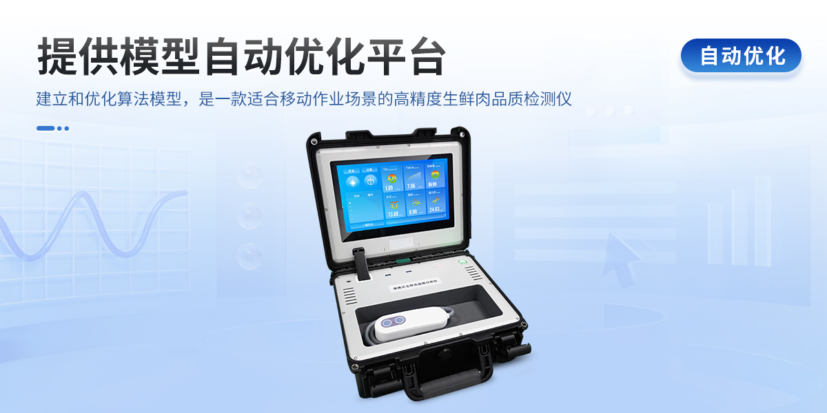 可用于檢測生鮮肉的蛋白質(zhì)、脂肪、水分、pH、TVC、TVB-N、新鮮度、L*、A*、B*等品質(zhì)參數(shù)。配備手提箱式防水減震外殼、大尺寸觸控屏幕并內(nèi)置大容量電池,可一鍵自動校準(zhǔn),是一款適合移動作業(yè)場景的高精度生鮮肉品質(zhì)檢測儀,其可用于生鮮肉及肉品生產(chǎn)、加工、儲運(yùn)企業(yè)、肉品品質(zhì)監(jiān)管部門等。