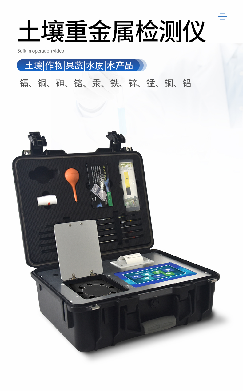 | 性能可靠,工作穩(wěn)定性均優(yōu)于國家標準JJG79-90標準5--6倍,重復性達到光柵類分光光度計指標,采用微處理器技術(shù),單片機控制,觸摸按鍵,操作簡便。 | 重金屬測試采用聯(lián)合消化和分項測試技術(shù),簡化測試流程,減少測試時間,大大提高測試效率,提高測試精度。 | 擴展性強,該儀不僅可以專用于重金屬的檢測還可以擴展測定土壤、肥料、植株中養(yǎng)分的測試(HM-ZSA型),一機多用。 | 土壤重金屬檢測儀集藥,器,儀于一體,相當于一個小型實驗室, 兩個鋁合金箱體,易于攜帶,便于現(xiàn)場測試,流動服務。適于基層檢測部門對含有重金屬污染的蔬菜、水果等食品進行篩選。 |