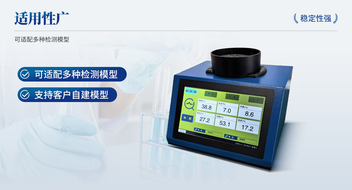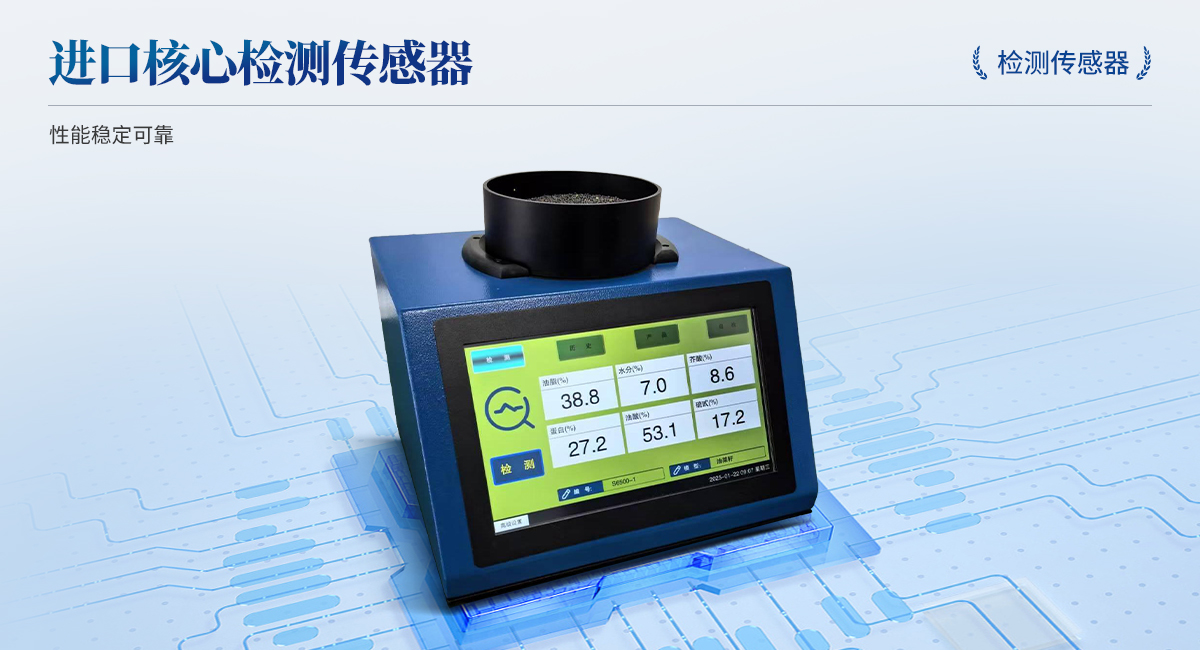 近紅外光譜分析儀,是針對(duì)原糧、食品、飼料等行業(yè)開(kāi)發(fā)的專用 檢測(cè)設(shè)備,可無(wú)損、快速、準(zhǔn)確地檢測(cè)樣本的水分、脂肪、蛋白質(zhì)等多種指標(biāo)。