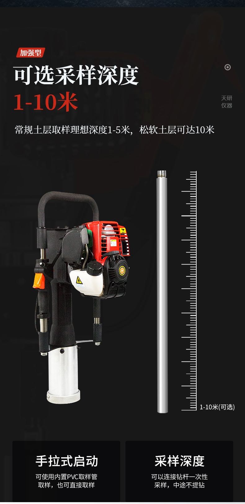 動力(汽油)土壤采樣器(汽油動力土鉆)土壤采樣器是本廠汲取廣大客戶意見、經(jīng)多方用戶需求和市場調(diào)研,開發(fā)出的一款動力(汽油)土壤采樣器。儀器采用汽油機驅(qū)動、以大幅減免土壤取樣人員的勞動力和快速、取樣簡便而著稱。