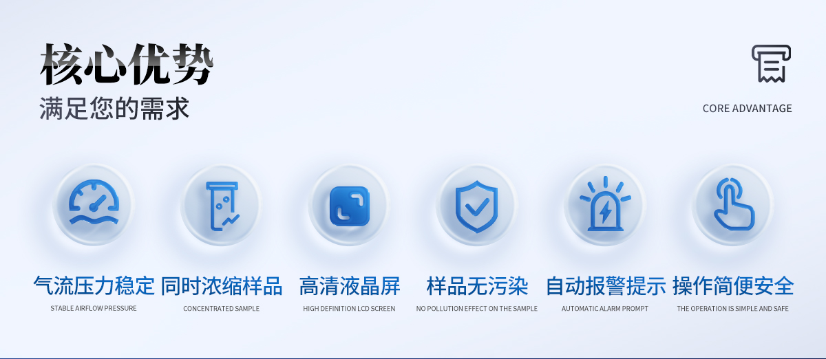 全自動多功能干式氮吹儀YT-QD12G是我司結(jié)合實驗室使用需求,從使用者方便安全快捷穩(wěn)定等多角度共同開發(fā)的新型濃縮定容產(chǎn)品,產(chǎn)品擺脫了常規(guī)市場上利用水浴加熱揮發(fā)而導(dǎo)致樣品進(jìn)行污染的弊端,確定樣品的安全性與準(zhǔn)確性,具有無人值守、準(zhǔn)確定容、大批量濃縮的特點,可多組數(shù)據(jù)儲存功能,實現(xiàn)了全自動化的定量及批量濃縮,濃縮全程,讓繁瑣的濃縮過程變得靈活、省心、**和安全。