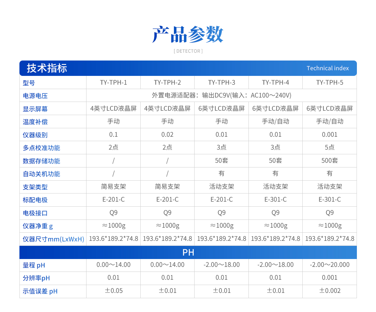 產(chǎn)品概述:TPH系列臺(tái)式酸度計(jì)是一臺(tái)實(shí)驗(yàn)室常規(guī)分析測(cè)量?jī)x器,它適用于醫(yī)藥、環(huán)保、衛(wèi)生、地質(zhì)探礦、高等院校和科研單 位的實(shí)驗(yàn)室,測(cè)量樣品溶液的pH值。產(chǎn)品優(yōu)點(diǎn):1.顯示標(biāo)定、測(cè)量和數(shù)據(jù)穩(wěn)定符號(hào)及溫度、電極斜率。2.支持背光和恢復(fù)出廠、手動(dòng)溫補(bǔ)、連續(xù)測(cè)量模式功能。3.支持?jǐn)?shù)據(jù)存儲(chǔ)、刪除和查閱(PH50-3/4/5)及數(shù)據(jù)打印和