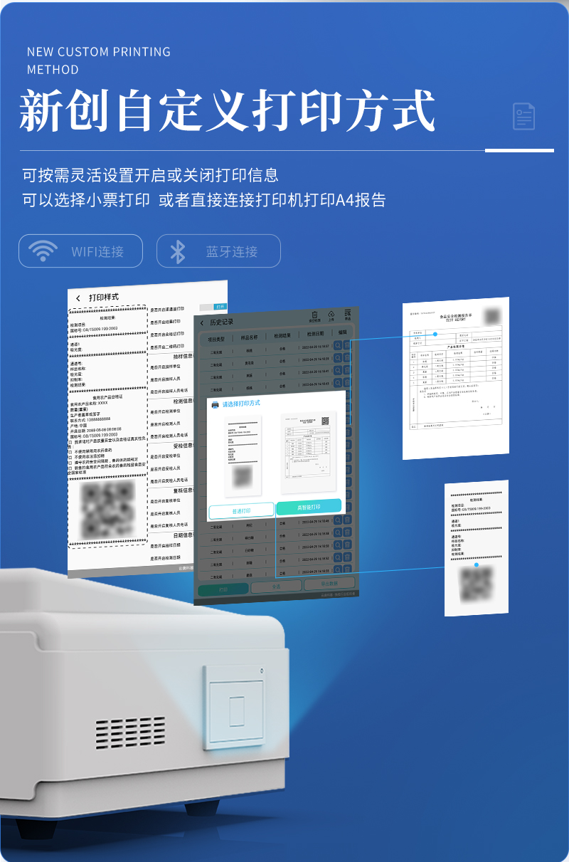 | 儀器采用手提式一體化系統(tǒng)檢測(cè)技術(shù),將分光光度模塊、新型農(nóng)殘檢測(cè)模塊、數(shù)字化管理模塊、無(wú)線通訊模塊高度集成于一體,支持檢測(cè)200種食品安全檢測(cè)項(xiàng)目,同時(shí)預(yù)留升級(jí)檢測(cè)方法。 | 儀器檢測(cè)模塊標(biāo)準(zhǔn)化、智能化,檢測(cè)項(xiàng)目可隨意自由組合。檢測(cè)箱體內(nèi)置多個(gè)標(biāo)準(zhǔn)檢測(cè)單元,檢測(cè)模塊可以調(diào)整配置。 | 顯示屏幕:儀器采用10.1英寸豎向液晶觸摸屏顯,搭配運(yùn)行安卓智能操作系統(tǒng),主控芯片采用ARM Cortex-A7,RK3288/4核處理器,主頻1.88Ghz,操作方便,性能更強(qiáng)。 | 檢測(cè)通道:≥12通道;采用精密旋轉(zhuǎn)比色池設(shè)計(jì),使用同芯片同光源校準(zhǔn)精度,解決不同光源之間的誤差值,更加準(zhǔn)確**。(1-12通道間誤差0.1%,**號(hào):ZL202022821055.2) | 儀器光源:高精度進(jìn)口四波長(zhǎng)冷光源,每個(gè)通道均配置 410、520、590、630nm 波長(zhǎng)光源,標(biāo)配**的光路切換裝置,**光路切換功能可實(shí)現(xiàn)64波長(zhǎng),并且所有檢測(cè)項(xiàng)目可實(shí)現(xiàn)所有通道同時(shí)檢測(cè)。 | 設(shè)備可一鍵校準(zhǔn),自動(dòng)保存校準(zhǔn)數(shù)據(jù),自動(dòng)對(duì)比校驗(yàn),得到精準(zhǔn)光源,采用Android SP存儲(chǔ)數(shù)據(jù),光源數(shù)據(jù)永不丟失,方便每一次使用。 | 通訊接口:配備無(wú)線通信模塊、4G(APN)通訊模塊、藍(lán)牙傳輸,同時(shí)具有雙USB接口以及RJ45網(wǎng)線接口,可以多方式實(shí)現(xiàn)數(shù)據(jù)保存及數(shù)據(jù)傳輸 | 存儲(chǔ)方式:支持U盤存儲(chǔ),標(biāo)準(zhǔn)USB接口,免驅(qū)動(dòng)安裝。檢測(cè)結(jié)果存儲(chǔ)容量20萬(wàn)條以上,可生成Excel表格進(jìn)行拷貝,并具有登錄保護(hù)功能。 | 智能化操作系統(tǒng): | 1)操作系統(tǒng):儀器可在同一檢測(cè)界面自動(dòng)對(duì)應(yīng)相關(guān)檢測(cè)通道,一次性選擇1-12個(gè)樣品名稱,無(wú)需退出界面,節(jié)省操作時(shí)間。并可以對(duì)每個(gè)通道屬性和樣品信息單獨(dú)進(jìn)行編輯,例如送檢單位、人員,檢測(cè)人員等,打印時(shí)勾選打印顯示。 | 2)數(shù)據(jù)集成系統(tǒng):設(shè)備首頁(yè)自動(dòng)匯總分析檢測(cè)數(shù)據(jù),包含:周檢測(cè)數(shù)據(jù)、月檢測(cè)數(shù)據(jù),全部檢測(cè)總數(shù)量,均包含檢測(cè)總數(shù),合格數(shù),不合格數(shù),以及相關(guān)柱形分析圖,各項(xiàng)檢測(cè)數(shù)據(jù)一目了然,無(wú)需電腦查詢,更加快捷直觀。 | 3)數(shù)據(jù)庫(kù)系統(tǒng):十幾項(xiàng)數(shù)據(jù)庫(kù)分類管理儀器:包含項(xiàng)目類型、項(xiàng)目數(shù)據(jù)、檢測(cè)數(shù)據(jù)、歷史記錄、國(guó)標(biāo)信息、曲線信息、采樣信息、檢測(cè)信息、受檢信息、復(fù)核信息、圖表信息、光源校準(zhǔn)信息、打印樣式信息、樣品庫(kù)信息等等,數(shù)據(jù)庫(kù)之間互相協(xié)調(diào)聯(lián)動(dòng)保證數(shù)據(jù)的真實(shí)完整性。同時(shí)產(chǎn)品數(shù)據(jù)庫(kù)以及歷史檢測(cè)記錄支持一鍵檢索功能。 | 4)限量規(guī)判系統(tǒng):具有限量查詢、添加物質(zhì)合規(guī)判定系統(tǒng)。檢測(cè)出結(jié)果后,系統(tǒng)自動(dòng)調(diào)用系統(tǒng)數(shù)據(jù)庫(kù)中相關(guān)國(guó)標(biāo)進(jìn)行比對(duì)判定,客觀顯示判定結(jié)果是否合格。 | 5)項(xiàng)目預(yù)設(shè)系統(tǒng):儀器具有任務(wù)預(yù)設(shè)模塊,一鍵提前預(yù)設(shè),給出方便快捷的新檢測(cè)方案,每一個(gè)任務(wù)分別可以設(shè)置不同的樣品、批次、編號(hào)、來(lái)源、備注、抽樣信息、檢測(cè)信息、受檢信息、復(fù)核信息等更多信息。樣品送檢時(shí)一鍵調(diào)取保存信息,并可多次調(diào)取,大大提高檢測(cè)效率。 | 6)數(shù)據(jù)監(jiān)管系統(tǒng):同步對(duì)接監(jiān)管平臺(tái),數(shù)據(jù)可局域網(wǎng)和互聯(lián)網(wǎng)數(shù)據(jù)上傳,檢測(cè)結(jié)果可選擇直接傳至食品安全監(jiān)管平臺(tái)。進(jìn)行區(qū)域食品安全監(jiān)管及大數(shù)據(jù)分析處理與數(shù)據(jù)統(tǒng)計(jì),檢測(cè)區(qū)域食品安全長(zhǎng)短期動(dòng)態(tài),達(dá)到食品安全問(wèn)題預(yù)估、預(yù)警。 | 7)打印系統(tǒng):內(nèi)置全新打印機(jī),新創(chuàng)自定義打印方式,可按需靈活勾選控制:產(chǎn)品合格證(國(guó)家農(nóng)業(yè)部標(biāo)準(zhǔn)要求),二維碼,抽樣信息、檢測(cè)信息,受檢信息、復(fù)核信息、抽樣日期、檢測(cè)日期等信息的打印。 | 供電模式:儀器交直流兩用,直流12V供電,可連接車載電源,可配6ah大容量充電鋰電池,電量可實(shí)時(shí)顯示,方便戶外流動(dòng)測(cè)試。 | 膠體金檢測(cè)模塊:采用雙通道CMOS成像處理技術(shù)及膠體金免疫層析技術(shù),可同時(shí)讀取雙膠體金卡數(shù)據(jù),自動(dòng)采集、處理分析,將檢測(cè)結(jié)果顯示,并可根據(jù)參考限值自動(dòng)判斷檢測(cè)結(jié)果,可檢測(cè)常見(jiàn)的獸藥殘留、生物毒素、抗生素、違禁添加物等。 | 1)探測(cè)技術(shù):CMOS成像探測(cè); | 2)檢測(cè)通道:1個(gè)通道; | 3)檢測(cè)方式:消線法和比色法; | 4)顯示模式:陰性或陽(yáng)性; 